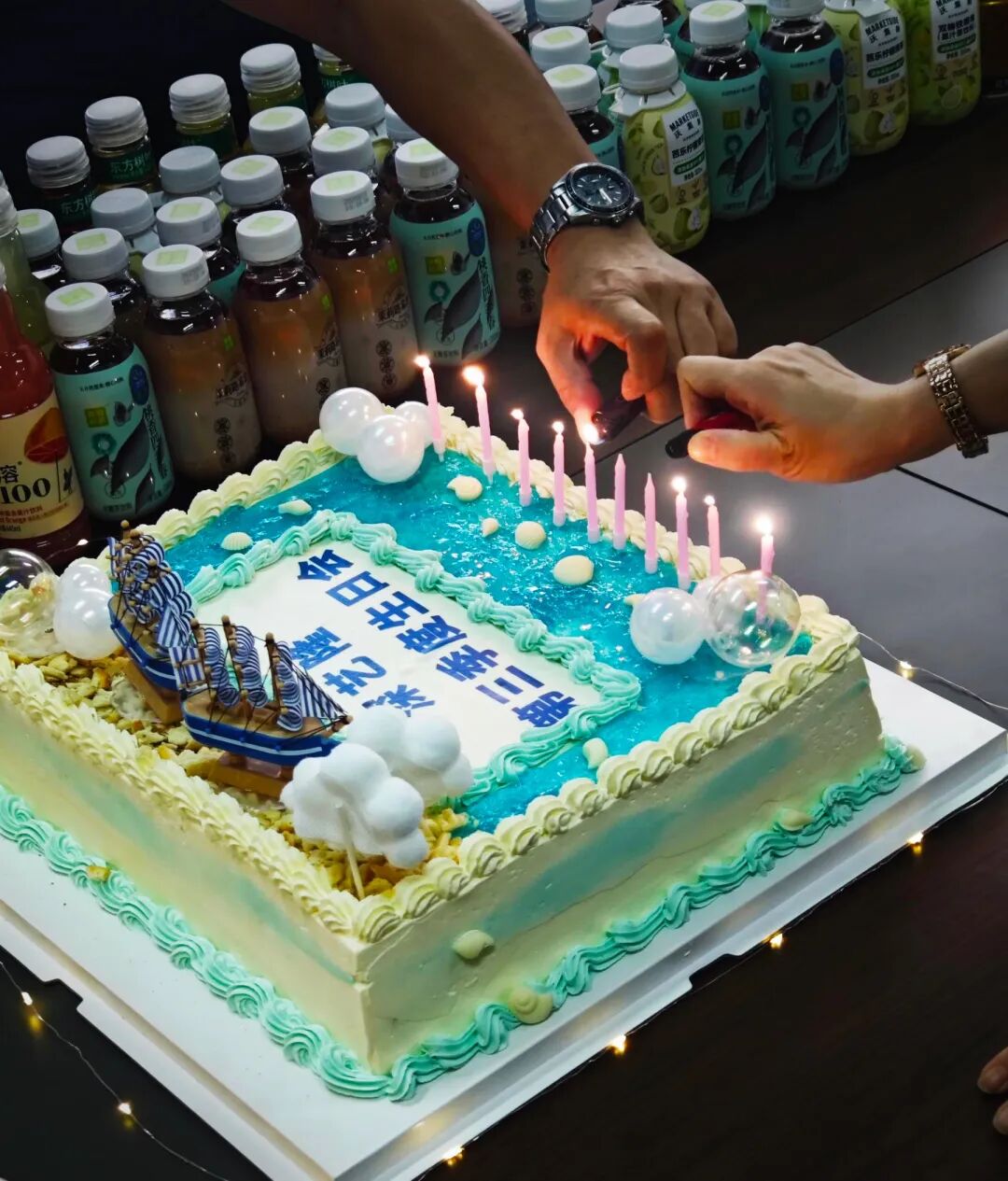 9月17日下午,会议室变身欢乐的海洋。蓝色工装与缤纷气球相映成趣,冰冷金属与温暖笑脸完美融合。特别定制的蛋糕成为全场焦点,既彰显公司特色,又体现公司对每位员工的用心